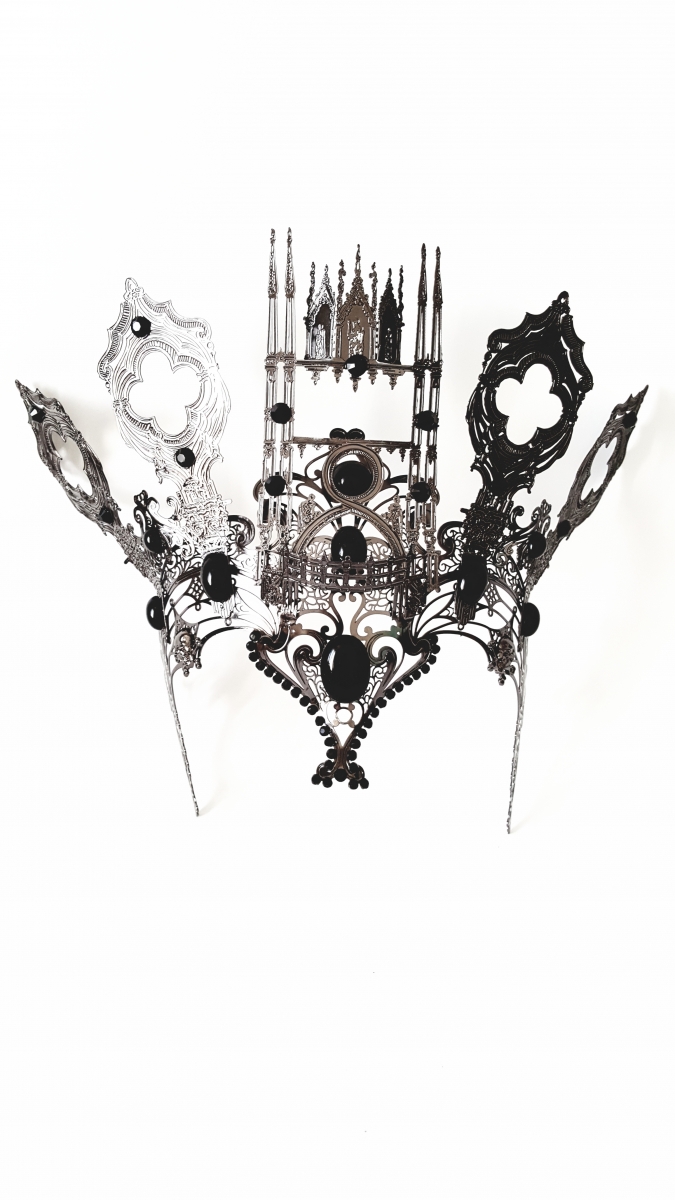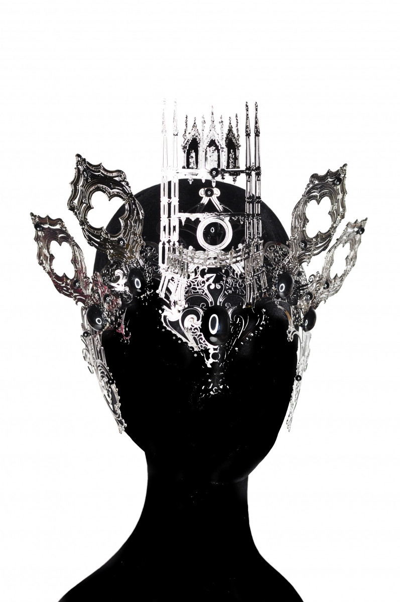 Dieser Tiara-Helm ist handgefertigt aus Messing und hat ein poliertes galvanisches Bad. Er ist mit Cabuchon- und Swarovski-Kristallen verziert (Komponenten von Daniel Swarovski & Co.). Bequem, leicht und dank des langen Schweißkamms sehr praktisch zu tragen, ideal für Fashion Street, Gothic, Fantasy und Steampunk-Kostüme, aber auch für X-Performer und Künstler. Made in Venice, Qualität made in Italy.